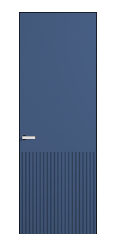 Это полотна с рельефной фрезеровкой. Этот прием делает интерьер объемным, тактильным, вносит интересную текстуру и создает современный образ. Волнистый рельеф может быть выполнен по ламелям из массива дуба в древесных матовых отделках, либо исполнен по натуральному и экологически безопасному материалу — ХДФ, покрытому гладкой эмалью актуальных оттенков.