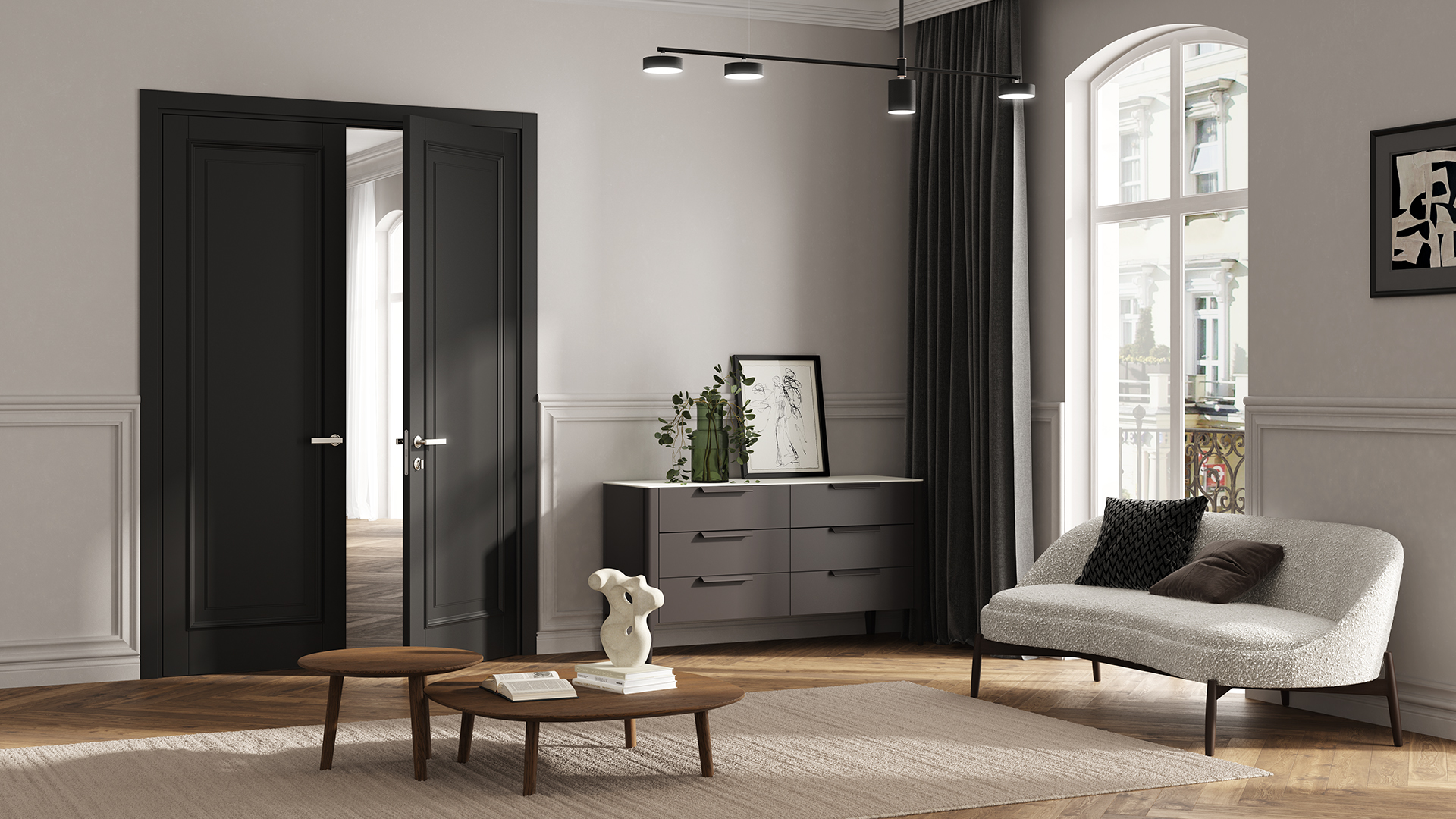 Шарм — выразительная коллекция дверей из массива бука в эмалевых и экстра-матовых древесных отделках. В основе три актуальные формы, приобретающие свою уникальность за счёт нескольких вариантов фрезеровки: рифление и каннелюры. Завершает образ узкий наличник.