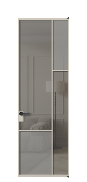 Дверь межкомнатная АЛПЛ041.23 АСБЖ Серый сатин матовое + Серый прозрачное. Цвет Алюминий светло-бежевый. Материал Алюминий в эмали. Коллекция Mosaic. Картинка.